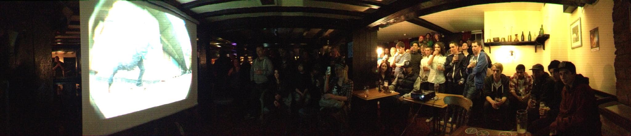 Pompey prem was in the basement of a comic book store projected onto a brick wall (Dooope!!)....