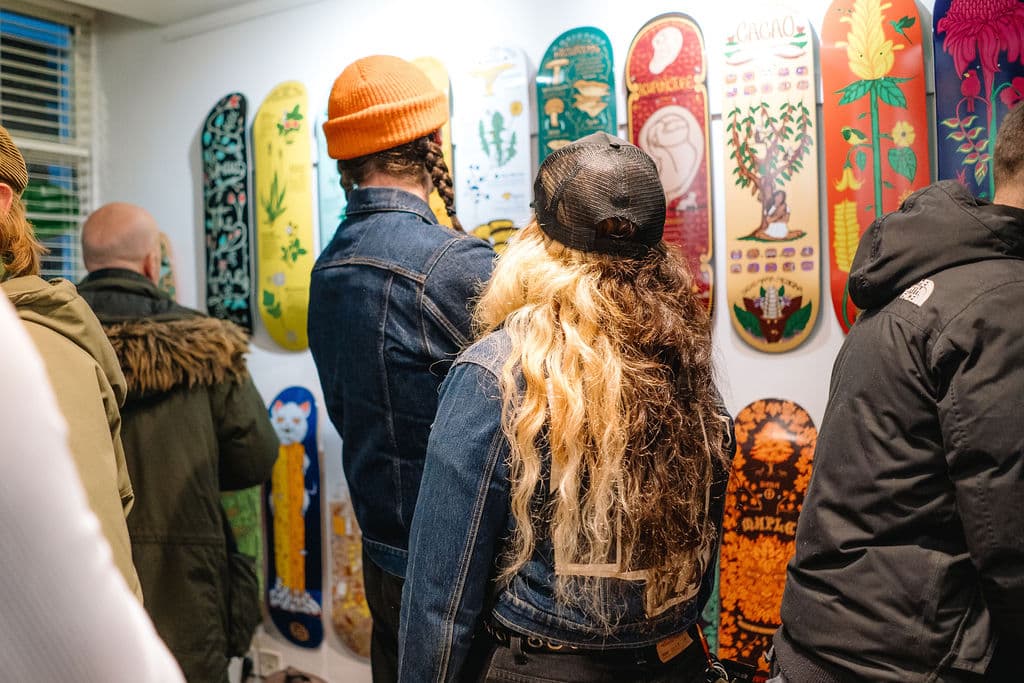 Saturday went off !! Loads of heads from all the generations braved the cold to witness 20 years Drawing Boards creations. I was genuinely blown away by the support and love in the room. Was rad to hear so many stories and have a laugh with old and new friends. So grateful to my friend Skinner for helping me get everything lined up. Also thankful to my family Mill and Tab for allowing me the space to get it done. Photos by the talented Gillian Clarkson.. The boards will be hanging Mid Street Lab until February 1st soo if you missed it (or even if you want to check it again) it’s open from 12-5pm Tues to Sat.. Big thanks of course to the man about town JJ for this opportunity .. Hope to see you there.
